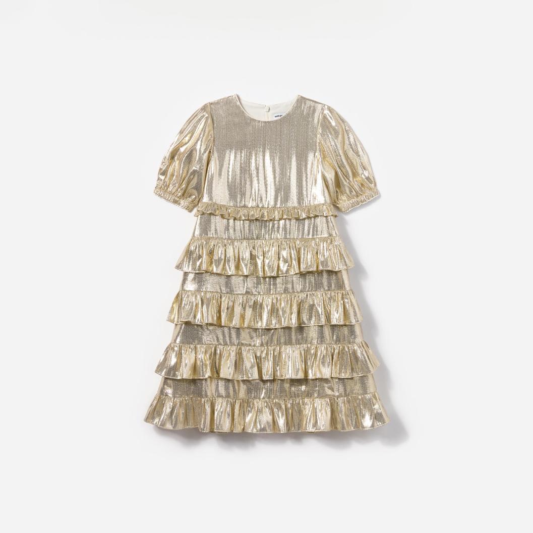 Kids Gold Metallic Frill Dress | Self Portrait