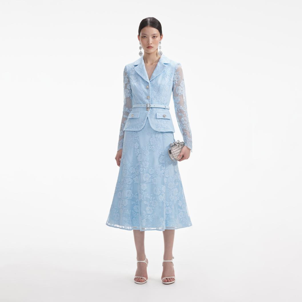 Blauwe kanten midi-jurk voor dames | Zelfportretjurken