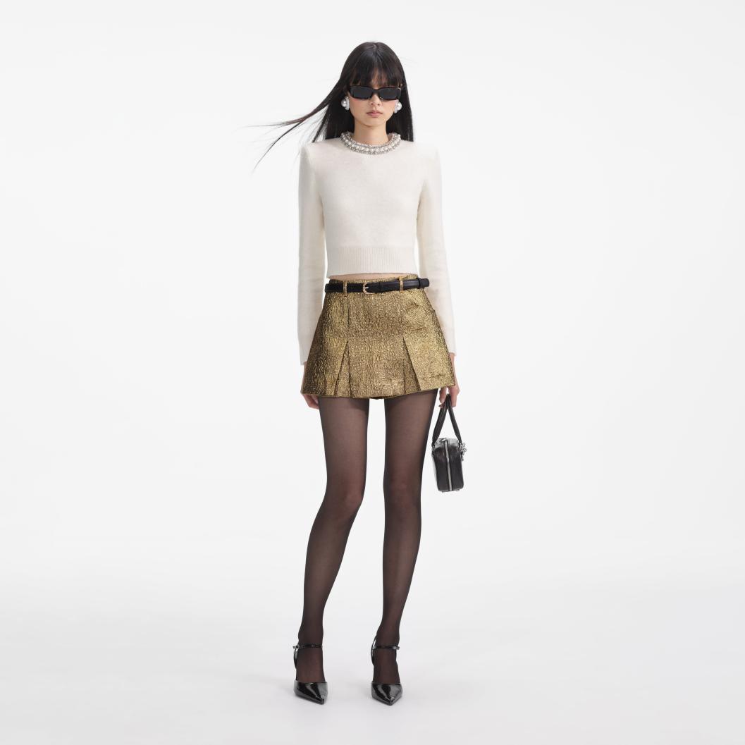 Crèmekleurige gebreide top met versieringen voor dames | Zelfportret-tops