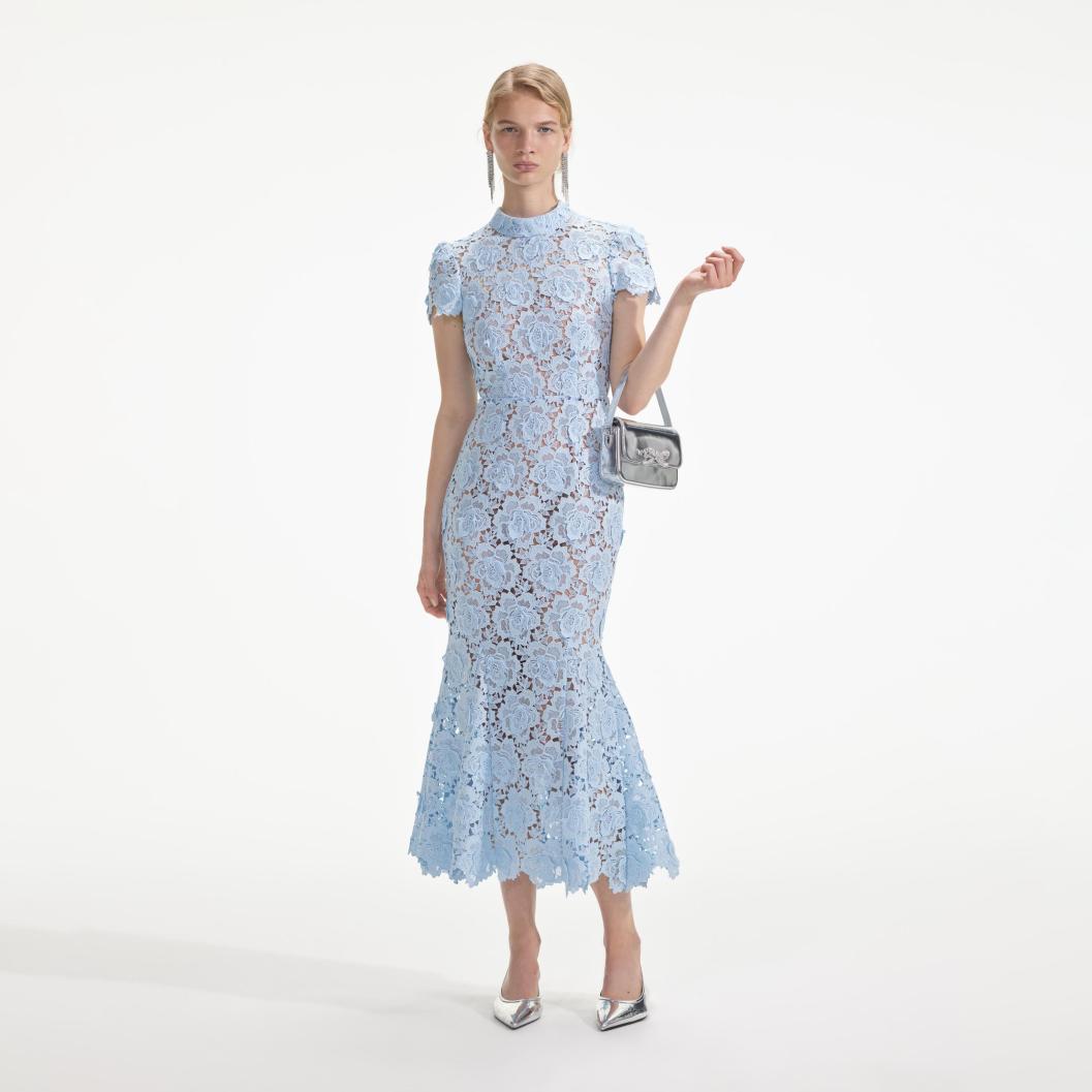 Dames Blauwe Bloemen Kant Midi-jurk Blauw | Zelfportret Jurken