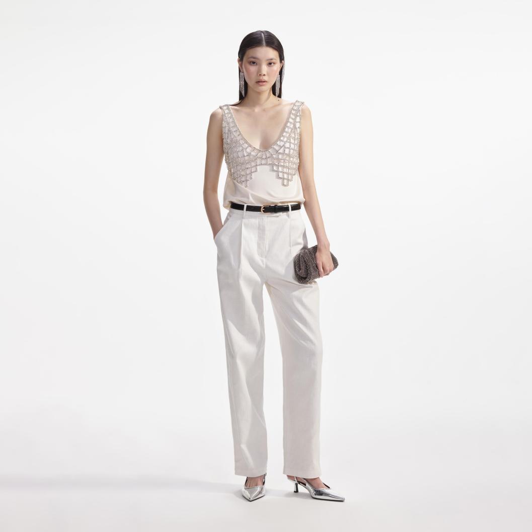 Dames crème satijnen bralette top met diamantjes | Zelfportret tops