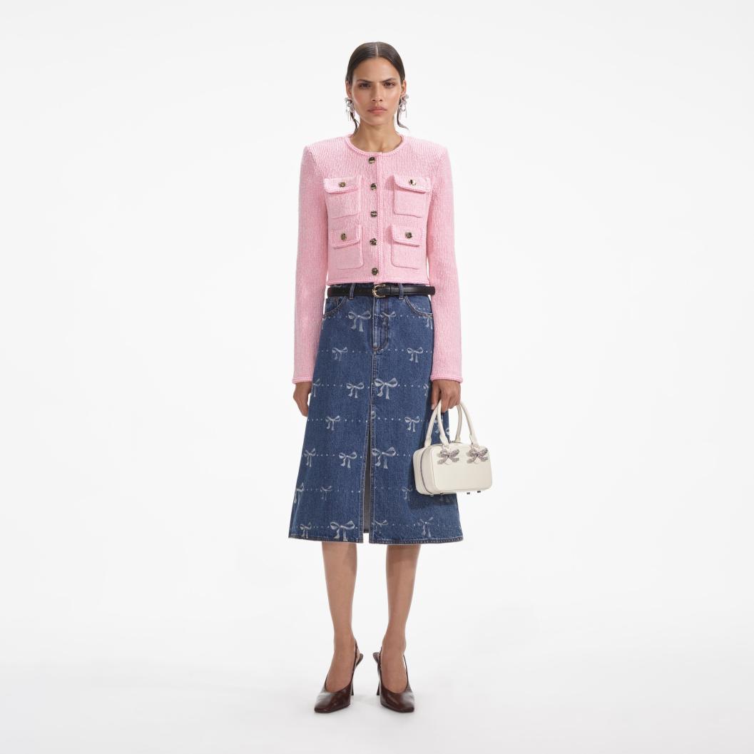 We zijn dol op combi-sets, en dit merinovest – met zijn suikerzoete kleurenpalet, eksteraccenten en kortere snit – is de helft van een onfeilbare partylook. Versterk de glans met onze opvallende oorbellen.