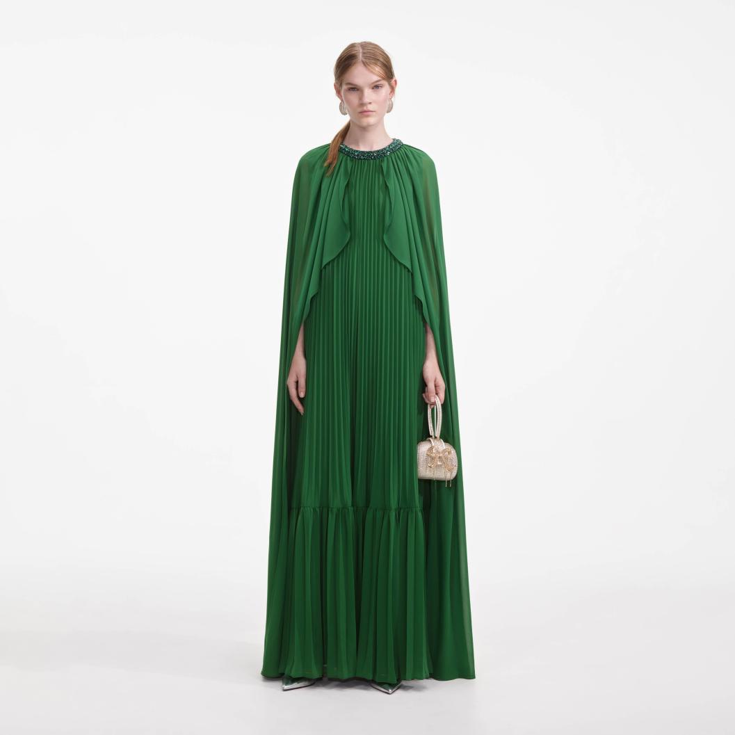 Groene chiffon cape maxi-jurk voor dames | Zelfportretjurken