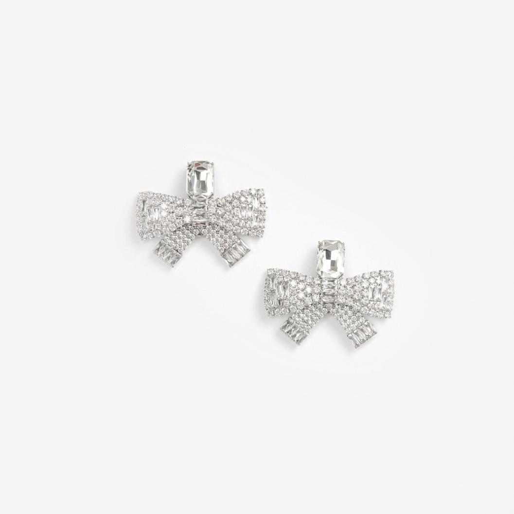 Als het om een huisstijl gaat, geldt: hoe meer zielen, hoe meer vreugd: deze oorbellen met kristallen strik zijn een speelse en vrouwelijke manier om het gezicht te omlijsten.