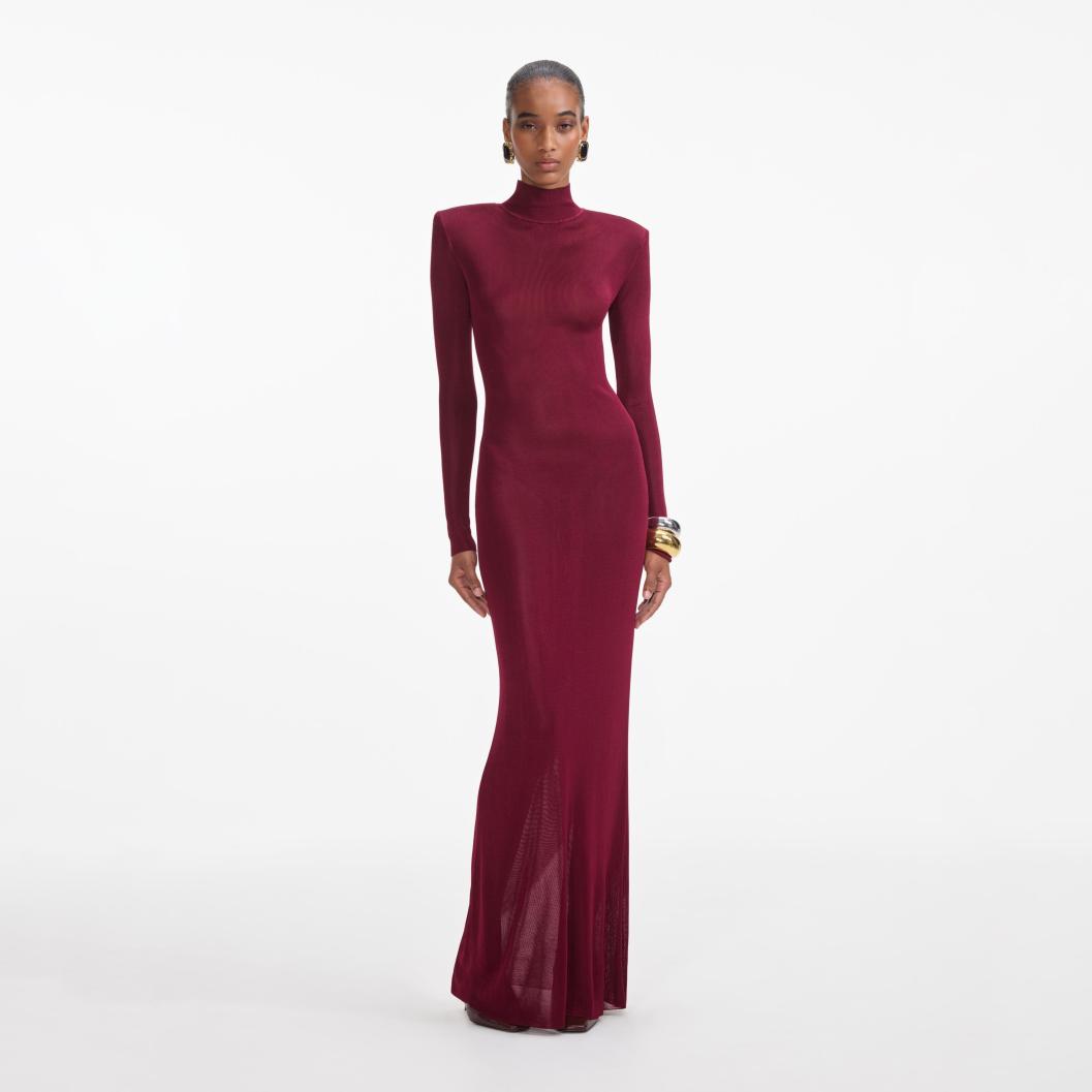 Vrouwen Bourgondië Viscose Brei Maxi-jurk | Zelfportret Jurken