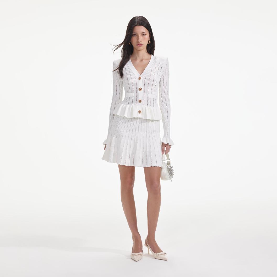 Vrouwen witte gebreide peplum mini-jurk | Zelfportretjurken