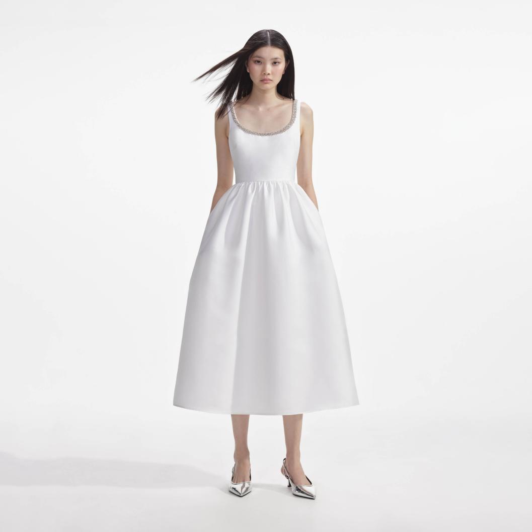 Vrouwen Witte Taffeta Diamante Midi-jurk Wit | Zelfportretjurken