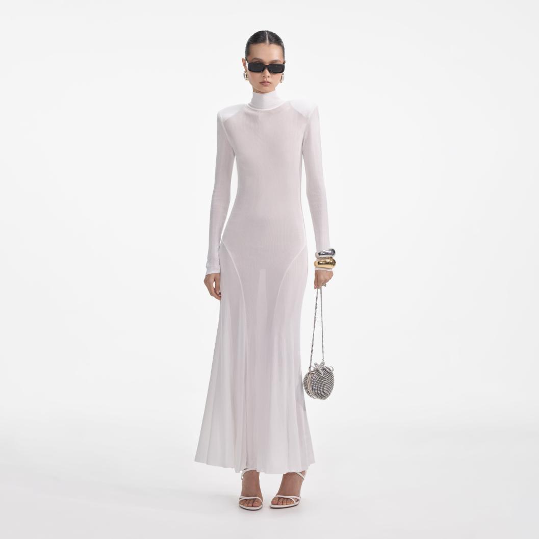 Vrouwen witte viscose gebreide maxi-jurk | Zelfportret breiwerk