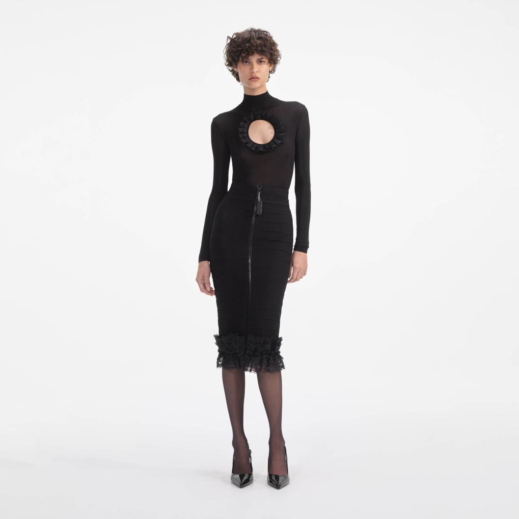 Vrouwen Zwarte Gebreide Bodysuit met Uitsnijdingen | Zelfportret Breiwerk