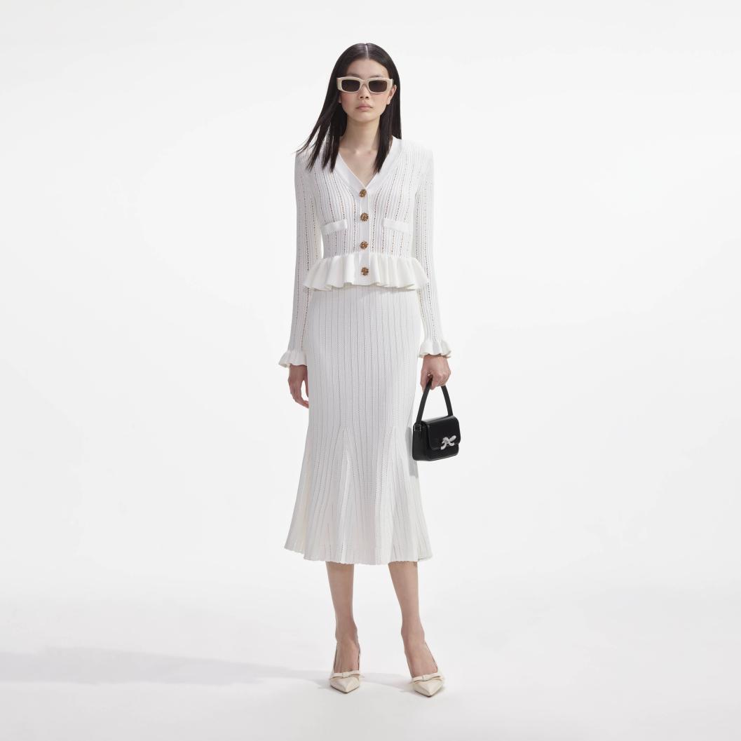 Witte gebreide peplum midi-jurk voor dames | Zelfportret breiwerk