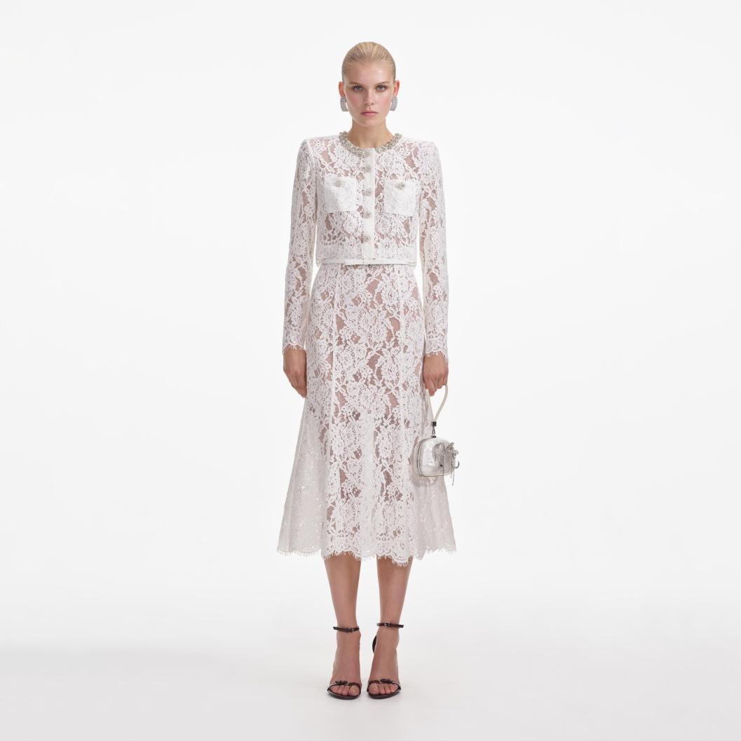 Witte kanten midi-jurk voor dames | Zelfportretjurken