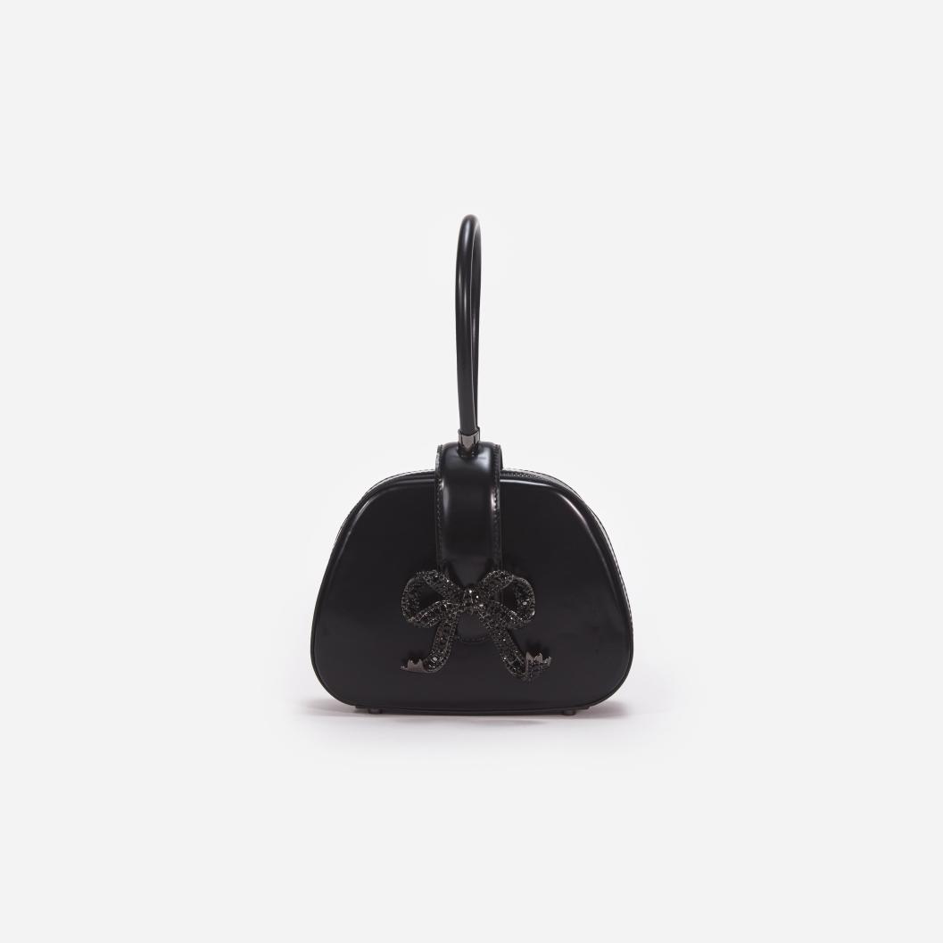 Dit volledig zwarte mini-polsbandje is gemaakt van boterzacht leer en combineert met zijn handige vorm en ton-sur-ton strass-strik glamoureuze vorm en functionaliteit. Combineer met onze statement oorbellen voor de ultieme finishing touch.