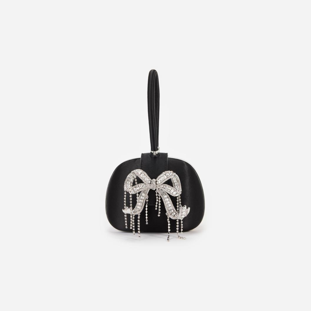 Zwarte satijnen clutch voor dames met handvat | Zelfportret handtassen