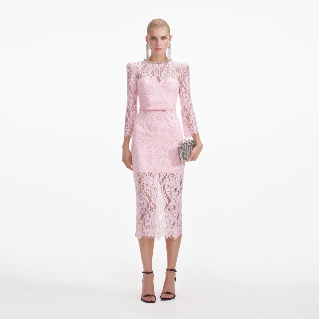 Women Pink Lace Bustier Midi Dress | Self Portrait Dresses