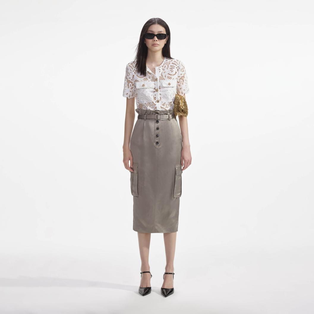 Women Satin Cargo Midi Skirt | Self Portrait Bottoms